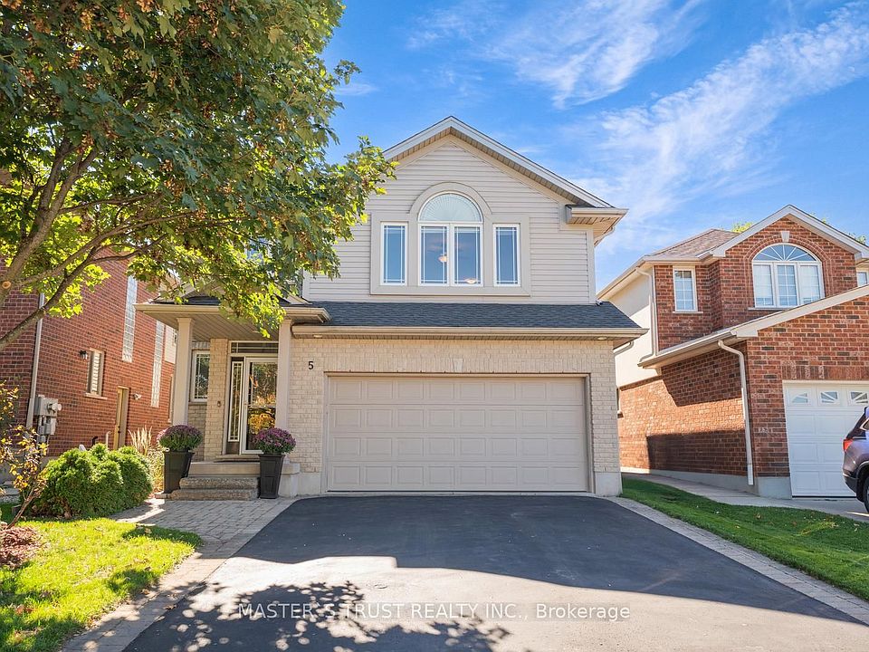 Welcome to 5 Howden Crescent! This 4-bedroom, 4-bathroom CARPET-FREE double garage home is beautifully finished on all levels and located in the very desirable neighborhood of Pineridge/Westminister Woods. Steps to Sir Isaac Brock public school, parks and the new High School scheduled to open in 2026-2027. Short drive to the University of Guelph, Hwy 401 and all major amenities. Situated on a quiet crescent BACKING ONTO GREEN SPACE. 4 spacious bedrooms upstairs including a master bedroom with his and hers walk-in closets and a four-piece ensuite bathroom. Bright kitchen with quartz countertop and stainless steel appliances. Fully finished WALKOUT BASEMENT with a kitchenette and three-piece bathroom. With a large back deck facing green space and a Fully Fenced Yard, this is the home you have been waiting! Upgrades include: Hardwood Stairs (2017), Roof (2019), Second Level Flooring (2023), Owned Water Heater (2023), Heat Pump (2023), New Paint (2023), Basement Kitchenette (2023), Dishwasher (2024).
