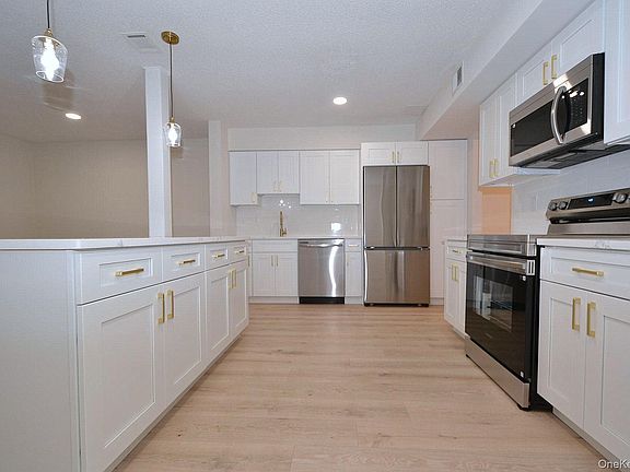 Welcome to this stunning, fully renovated end unit in The Hunt Club offering over 2,000 sq ft filled with natural light. Soaring vaulted ceilings in the living room, 3 bedroom, 2.5 bath home has been fully updated with a new kitchen with stainless steel appliances, quartz countertops, an island with plenty of storage. Enjoy the cozy fireplace, recessed lighting, waterproof laminate flooring, fully renovated bathrooms, new heating system, and new washer & dryer. The spacious primary suite offers a full bathroom and walk in closet. Outside you have a private patio on the side with sliding glass doors or enjoy the large deck off the back. The Hunt Club community offers an in-ground pool, clubhouse, fitness center, walking paths, basketball and tennis courts, and so much more. Photos have been virtually staged