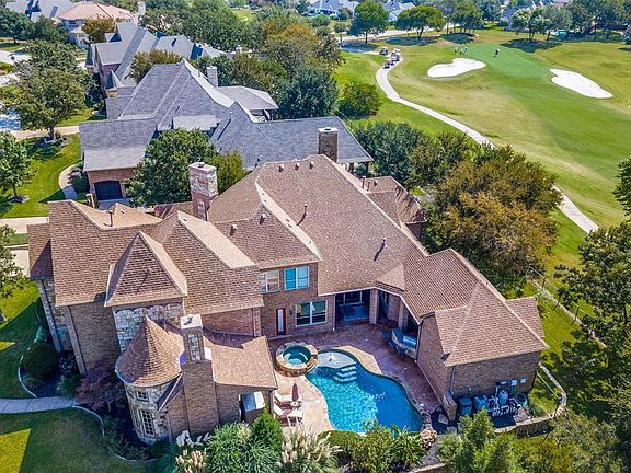 Stunning Custom Executive Estate with sweeping golf course views. Gorgeous architectural detailing with multiple archways, custom millwork, scraped hard woods, travertine, and exquisite ceiling designs. Huge island kitchen with Thermador appliances including 6 burner cooktop + gridddle, double ovens, vegetable sink, pot filler, instant hot water, and giant walk in pantry. 4 living on first floor: stately study-den; and warm family room, game room, and media room all with golf course views. 4 fireplaces with one in luxurious master suite w dbl shower. 3 incredible outdoor oasis: serene courtyard with fireplace; secluded outdoor living with pool, spa and waterfall; covered patio with panoramic golf course view.