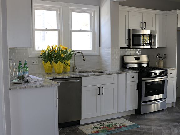 This home is move in ready just unpack & relax! Completely renovated from the ground up in 2017. Spacious living room leading to a newer modern kitchen with newer appliances only 2 years old, granite counter tops and modern subway tile back-splash. Beautiful kitchen cabinets with soft closing drawers. Open concept dining room. This colonial boasts 3 bedrooms, 2 full Bathrooms. Newer roof 3 years old, siding, Furnace, hot water Heater, windows, French doors leading to small deck. Bonus side Covered patio. Two new Ductless split cooling and heating units 1 year old on each Floor. Enjoy the meticulously landscaped, new PVC large fenced in yard, with a raised deck perfect for entertaining, or just relaxing in a large back yard. Large 2 Car Garage doors added 2019 2. All Appliances are included! Attic with additional storage. This home is in walking distance to NYC buses and minutes to the train. Convenient to major transportation, schools and shopping.45 Minutes to NYC and 50 minutes to P