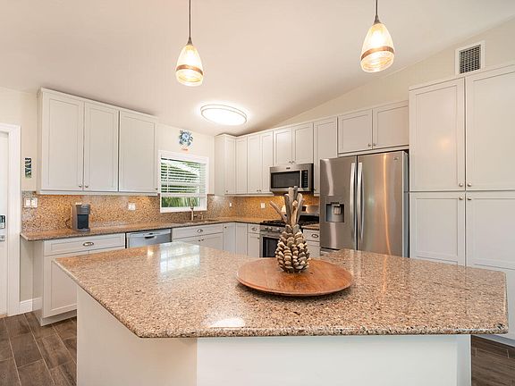 Stunning Geiger Key oasis with gorgeous Water Views just fifteen minutes from exciting Key West! This Boca Chica Ocean Shores home has it all; inside the expansive 3 Bedroom 2 Bathroom floor plan, a bright and welcoming open-concept main living space lends itself to entertaining. A well-equipped kitchen features a generous island, abundant cabinetry for storage, gas range, and granite countertops. The spacious primary retreat boasts an en suite bathroom and breathtaking Water Views. Two additional guest bedrooms offer plenty of space for a family or for hosting guests. Enjoy serene outdoor living space on the sizable open balcony, an ideal space for sipping morning coffee or evening cocktails. The neighboring beachfront lot is government-owned, ensuring privacy and unobstructed Open Water Views. Downstairs, the property if fully outfitted for frequent boating adventures with ease. The composite dock comes complete with a boat lift for added convenience. After a day on the water, rinse away salt and sand in the outdoor shower. Relax in the shade of the well-appointed tiki hut, or grill your fresh catch by the waterside on the observation deck; perfect for al fresco dining and entertaining friends. Bonus storage space under the home provides dry storage for keeping fishing gear and equipment out of the elements. The property offers an abundance of open and covered parking, as well as RV hookup with 220 service and pump-out station. Additional property features include a tankless water heater, impact windows and sliding glass doors, and sleek modern finishes. Lush tropical landscaping envelops the lot, offering loads of privacy. Located just minutes to boat ramps in both Geiger Key and Big Coppitt, this home is an ideal location for the avid boater. Nestled on a quiet street but just a short drive to all the action in Key West, this property is a must-see! Schedule a tour today!