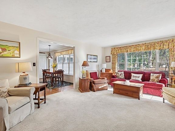 Beautiful, private cul-de-sac located at Intervale Farm at sought after Over 55 Community. This single family detached 3 bedroom, 2.5 bath classic New England style cape home is part of the Intervale Farm subdivision. This home features a first floor master bedroom w/full bathroom & closet. Spacious kitchen w/gas cooking, island, two pantry closets, recessed lighting, dining area & access to 3-season room. The open concept first floor has formal dining room w/doors & living room with fireplace opening to kitchen. First half bathroom & separate laundry room w/shelving. The second floor w/two bedrooms both w/closets & full bathroom. Walk-in access to attic area ~ ideal for additional storage space. Three season room w/ceiling fan & access to deck for outdoor dining. Private yard. Full basement. Oversized Garage w/additional space for storage. New Heating System. New Central Air, New HW Heater. Natural Gas for heat and cooking. Only minutes away from restaurants, shops & major highways.