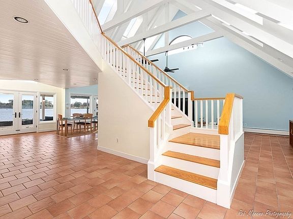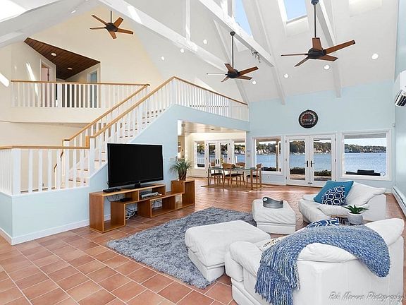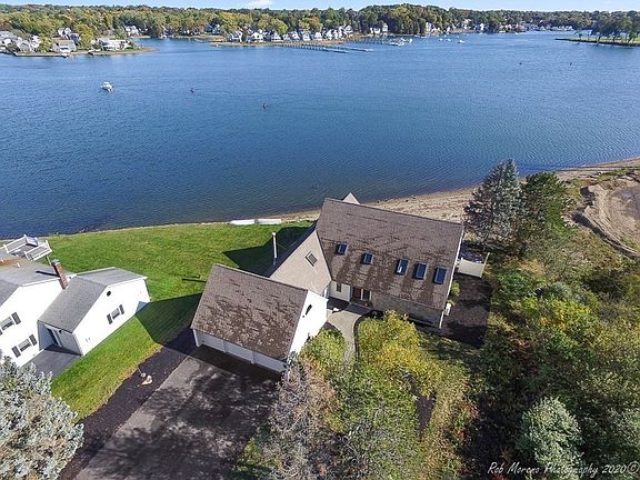 WATERFRONT! Situated across the river from Kernwood Golf Course, this custom 3-4 bdroom Contemporary captivates you the moment you enter! Open Concept Living Room and Dining welcome you with beamed Cathedral Ceilings and Water Views! French doors lead you to the Outdoor blue stone Patio, Deck, sunken hot tub & Private Beach! First floor also features Radiant heated tile floors, large Kitchen with separate mini-kitchen - great for entertaining!, laundry, Spacious Master Bedroom Suite with Cathedral Ceiling, Skylight, Master Bath, Walk-In Closet & access to the outdoors! Staircase leads up to a loft with a vaulted ceiling overlooking the LR & more Views! Second level also boosts 2 large Bedrooms both w/Skylights, (one w/ beamed cathedral ceiling, the other a walk-in closet!), a Full Bath, unfinished potential 4th bedroom & unfinished space over garage! Enjoy your 2 Car Garage, 1st fl Master Suite & spectacular SUNRISES! Open Houses Sat & Sun 12-2. Pre-approved buyers only!