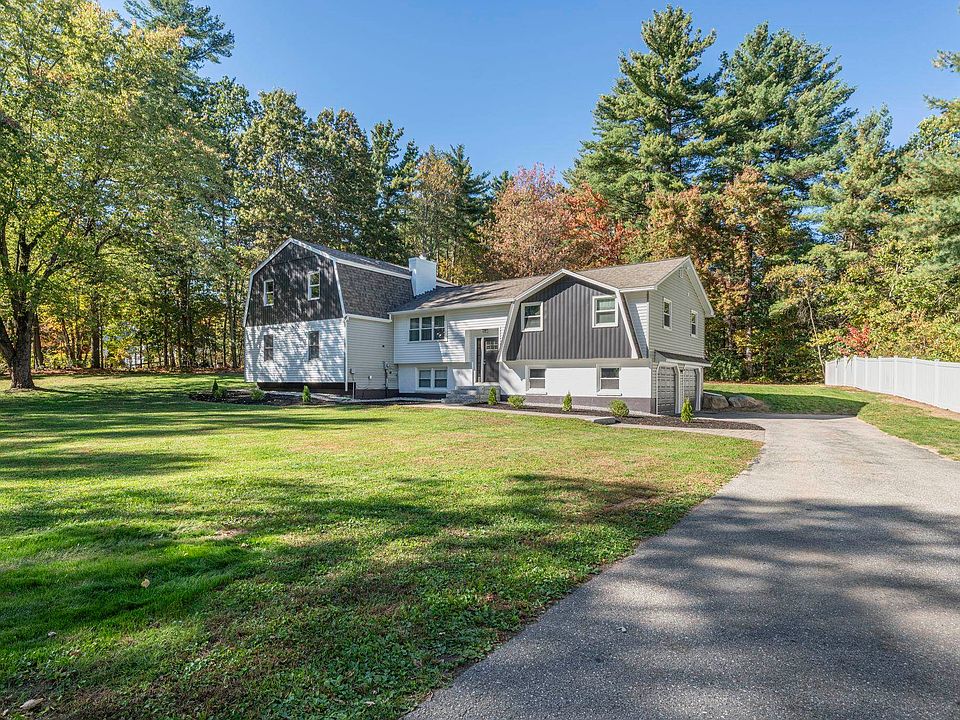 Stunning, One-of-a-Kind Expanded Split-Level Home – Perfect for Entertaining! Fall in love with this beautifully updated, open-concept 5-bedroom, 2.5-bath home offering over 2,800 sq ft of exceptional living space. Set on a serene 1-acre lot in a quiet neighborhood just minutes from Route 3, this home is a true entertainer’s dream. The gourmet kitchen is a showstopper, featuring a massive center island, quartz countertops and backsplash, updated cabinetry, and modern appliances. Just steps away, the impressive 30’ x 26’ great room boasts a cathedral ceiling, transom windows, French doors, and a custom dry bar with a wine fridge—ideal for gatherings of any size. This spacious 10-room home has been freshly painted throughout and features brand-new flooring, offering a maintenance-free lifestyle. Move right in and start enjoying all this exceptional property has to offer!