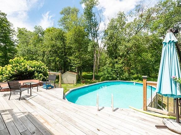 OPEN HOUSES CANCELLED! Spacious, updated colonial with farmhouse features, 4+ bedrooms, entertainers dream yard, and a 2nd level family room, complete with a wet bar and beverage taps! This home greets you with a classic farmers porch. The updated kitchen features granite counters, stainless steel appliances, and kitchen island. The kitchen opens to a separate dining room and living room with slider access to the back yard and deck. The first level also offers a laundry room, guest bed/office and full bath. Upstairs, youll find a main bedroom with cathedral ceilings, and stunning custom barn doors. The family room, and three additional bedrooms complete this level, with another full bath. Enjoy the warm summer nights with friends and family outside beneath the custom built pergola/gazebo, overlooking the hot tub, pool and large backyard. There is also a separate fenced in area off to the side, a bonus for all the dog lovers out there! The perfect home for family entertainment!