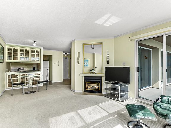 Looking for a home with a great river view? This well maintained one bedroom and den home could be the one. The den is large enough to serve as a second bedroom. Lots of windows, so bright and airy. There is a 19 foot by 6.5 foot deck off living room, den, and primary bedroom. Gas fireplace in living room. Insuite laundry. One parking stall. Updated shower in bath. The building also has a guest suite. This great home is close to Skytrain, shopping and entertainment district. OPEN HOUSE SUNDAY OCTOBER 5, 12 TO 2 PM .