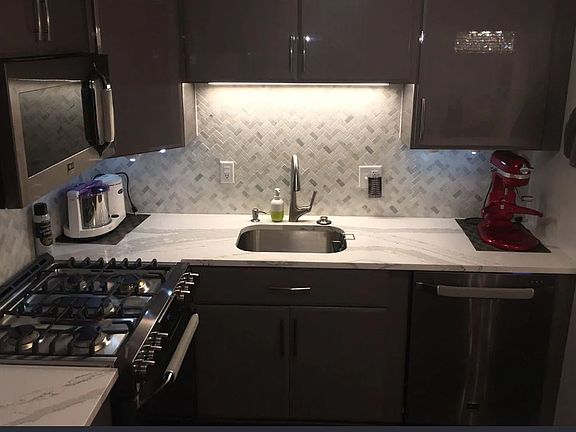 Luxury finishesModern stainless appliancesPrivate balconySleek new cabinetsRenovated interiorsQuartz countertopsLuxury kitchen renovation