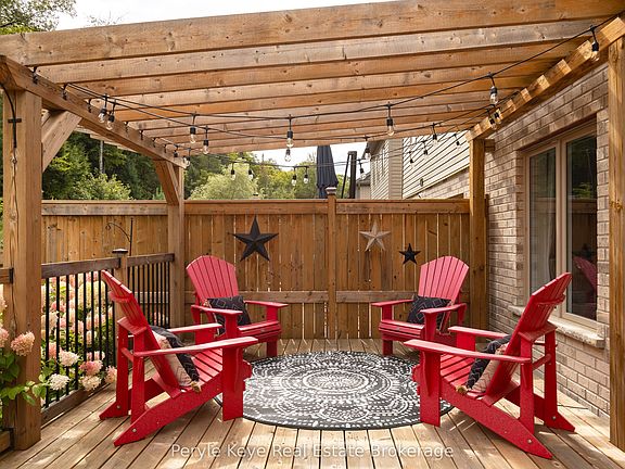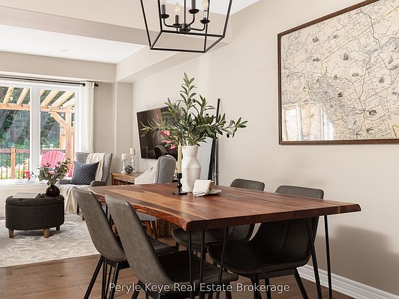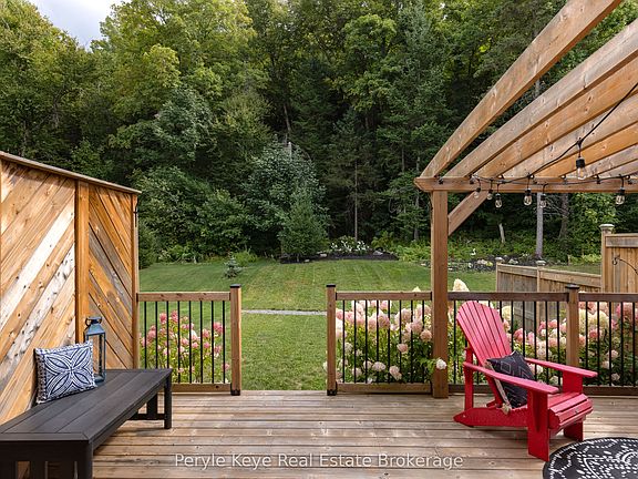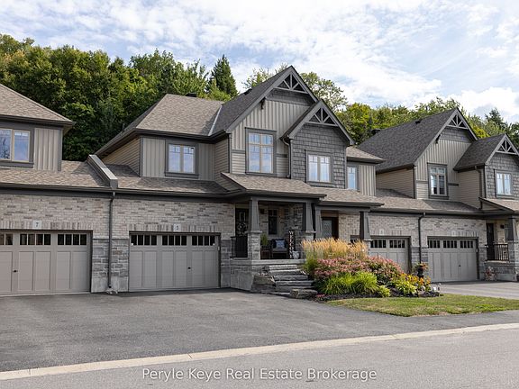 Nestled in the desirable Brookside Crossing community, this beautifully appointed 3-bedroom, 2.5-bath freehold townhome gives you full municipal services and low-maintenance living, all while backing onto a wooded ridge offering privacy and calm. It's the kind of place where you can exhale, knowing you've found the right balance between convenience and nature. Step inside and feel the difference. Hardwood floors carry through the main spaces and upgraded lighting that sets just the right mood. The kitchen will surprise you with extended cabinetry, crown molding, stylish backsplash and an island with bar seating. Just steps away, the interior access from the garage makes coming home easy, rain or shine. Upstairs, the primary suite offers a private retreat with forested views and its own 3-piece ensuite and walk-in closet. Two additional guest bedrooms give you flexibility, whether it's space for kids, guests, or a cozy home office. Thoughtfully designed, a 4pc bath and space for laundry complete this second level. The full, unfinished basement, complete with a rough-in bath and large window, gives you room to grow and the opportunity to design a space that suits your lifestyle. And then there's the backyard - the heart of where memories are made. Imagine summer evenings on your 20' x 12' deck, fireflies flickering while you stargaze under the Muskoka sky. Privacy fencing gives you a quiet spot to relax, while the tree-covered ridge behind your yard provides a natural backdrop that feels miles away from town. There's room for a fire pit, lawn games or raised garden beds. All of this is just minutes to schools, shopping, trails and parks! It's close enough for convenience but far enough to feel tucked away. Serviced with natural gas, municipal water and sewer, and high speed internet, you're always connected. Pride of ownership is evident throughout. Don't miss this amazing opportunity to make this townhome the backdrop of your next chapter.