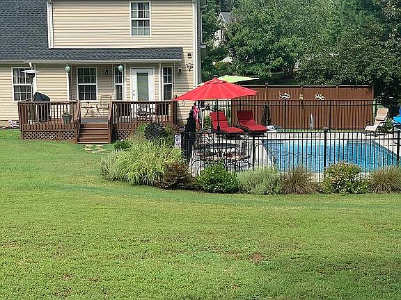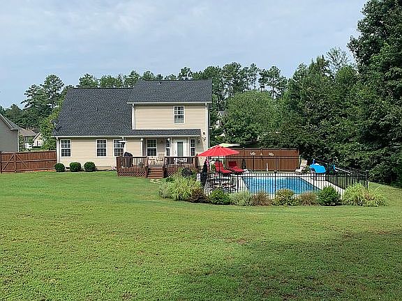 2193 sq. ft. home with architectural shingles and gutters installed within past 5 years, master bedroom with large bath and walk-in closet, and laundry on main level. Main area opens to freshly stained and sealed back deck that takes you to a beautiful private backyard space with recent privacy fence upgrade. An in-ground pool was installed in 2018 with wrought iron fencing. This home sits on nearly ¾ of an acre and has a wooded tree line on two sides! Additional three bedrooms (or two bedrooms and bonus room) upstairs. Bonus room has two large walk-in closets and over-garage unfinished space that new owner could turn into even MORE storage! House is nestled back with an extra-long driveway, and extra poured pad on the side. Waters Grove best kept secret is a common area fishing pond behind the cul-de-sac. Below is a list of recent upgrades since purchased: 14 X 28 In-Ground Pool with ionizer, cover, and robotic vacuum cleaner & manual cleaner (2018); Wrought Iron fence around pool (2018); Privacy fence (2019) – stained within past 3 months; LVT in kitchen & both bathrooms, & laundry on main level (2020); New carpet in master bedroom on main level (2020); Crown molding in living room, kitchen, and dining room (2019); New stainless appliances in kitchen (2018); Granite countertop in kitchen (2018); Backsplash & Stainless Sink in kitchen (2018); Washer & dryer (2017); Painted 3 bathrooms & 2 upstairs bedrooms (2018); Recently painted garage, & Master BR (2020). Call 864-477-8597 for appointment.