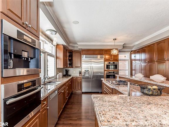 Beautifully Upgraded & Finished Top To Bottom! Impressive 3+1 Bed/4 Bath/3800 Fin Sqft Showpiece w/Bonus 3RD Level Loft. Stone/Concrete Walkways w/Landscape Lighting. Finished Garage w/Newer Doors, Epoxied Floors, Storage Loft & Cabinets. Gorgeous Eat-In Kitchen w/Granite Counters, Giant Island, Prep Sink, Breakfast Bar + High-End Appliances. Dining Rm w/Smart Workstation. Family Rm w/Gas Fireplace. Luxurious Master w/Dbl-Sided Fireplace, Spa Ensuite & W/I Closet. Upstairs Laundry. Computer Niche/Library. LL Rec Rm, Bed & Bath. Key Features: Covered Front Porch, 9FT/Vaulted Ceilings, Crown Molding, Built-In Cabinetry & Speakers, In-Ground Sprinklers, Int/Ext Pot Lights, Shutters, Hardwood + Fenced Yard w/Secret Cabana/Tiki Bar, Outdoor Kitchen, Huge Shed & Deck. Walking Distance To Great Schools, Parks & The Ardagh Bluffs Trails. Next-Level Living In Barrie Awaits! Offers considered anytime!