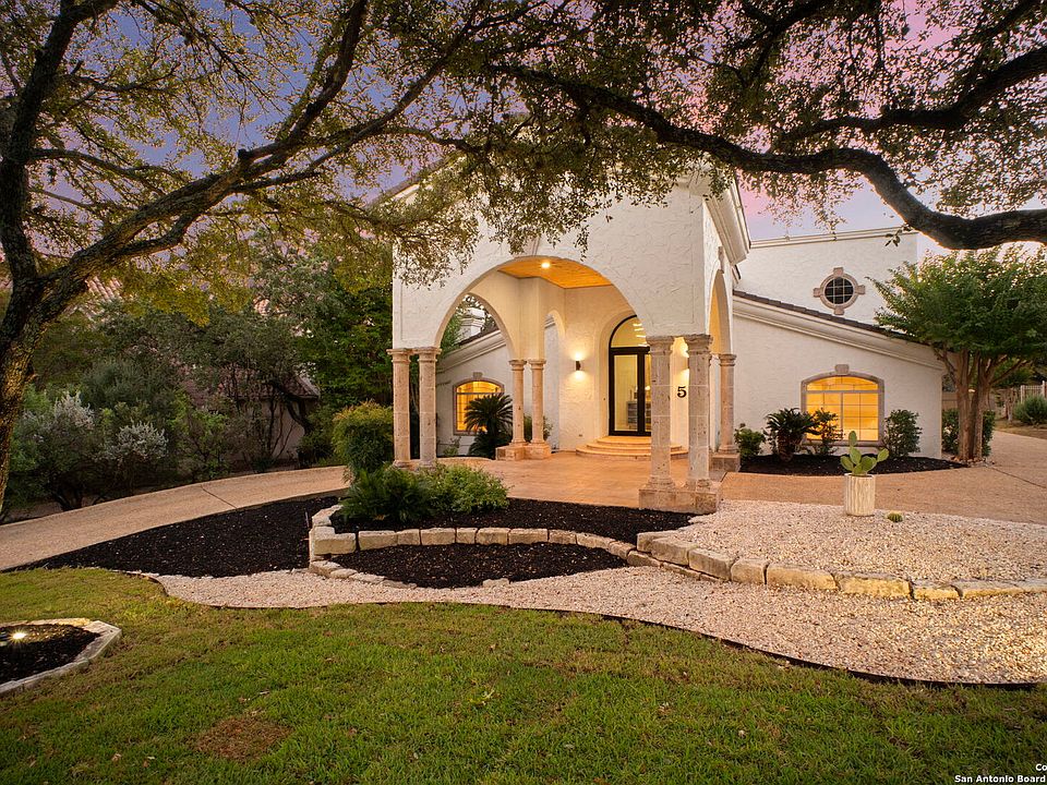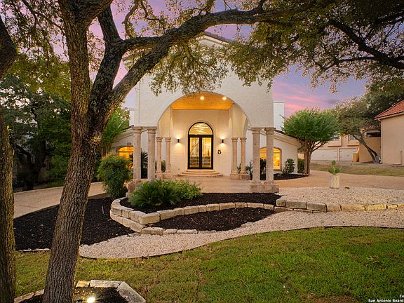 Discover timeless elegance and modern comfort in this newly remodeled Mediterranean-style masterpiece, perfectly nestled on a spacious, tree-lined cul-de-sac lot in the prestigious Dominion community. From the moment you pass through the guarded neighborhood entrance, this home will captivate you. Step through the grand castle-style double doors into a breathtaking two-story foyer. To your left, a spacious living room invites you to unwind or entertain, complete with a cozy fireplace and a gorgeous tray ceiling. Continue into the heart of the home and you'll find a chef's dream kitchen-featuring an oversized island, built-in oven, gas cooking, side-by-side built-in refrigerator, granite countertops, and abundant storage. Just off the kitchen, a warm and inviting second living area awaits, offering a beautiful fireplace and a wet bar, perfect for hosting gatherings or enjoying relaxed evenings with loved ones. The first floor also includes a private study with built-ins and a versatile bonus room-ideal for a second office, reading nook, or creative space. Upstairs, retreat to the luxurious primary suite, boasting dual walk-in closets with custom built-ins, an elegant tray ceiling, and a spa-inspired ensuite bathroom with a soaking tub, dual vanities, and a walk-in shower. Two additional bedrooms-one with its own private bath complete the upper level. With a four-car attached garage, natural gas heating, and impeccable attention to detail throughout, this home defines refined living at its best. Don't miss the opportunity to make this exceptional property your own piece of paradise in The Dominion.