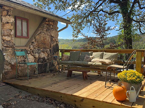 Your Ozark Mountain Escape Awaits! Step back in time with this rustic and unique cabin, perfectly nestled in the scenic foothills of the Ozark Mountains. This charming 1-bedroom, 1-bathroom retreat is brimming with nostalgia and comes fully furnished and move-in ready, offering an effortless escape from the everyday. Enjoy the natural beauty showcased by native stone floors throughout and a beautifully designed stone walk-in shower. Mornings are best spent on the screen-enclosed porch, and an inviting front deck provides a perfect spot for taking in the fresh clean air. Peace of mind comes with a roof replaced in 2022. This cabin is an ideal weekend getaway, short-term rental opportunity, or cozy full-time home. Don't miss your chance to own a true piece of mountain charm!