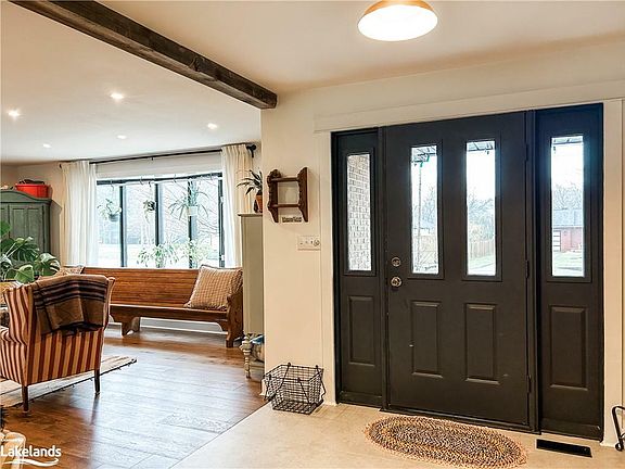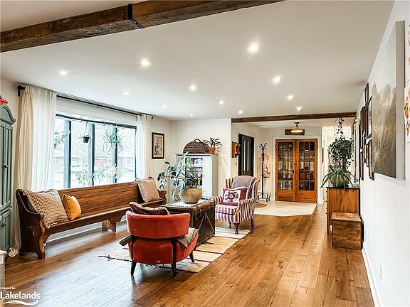 Come and see this extensively renovated luxury, 4400sf home, on a double lot, in the prestigious Highland Gate Estates in Minden. Notice the custom hemlock beams, hickory hardwood floors, custom tile & cedar bathrooms, and modern pot lights throughout this large 5 bedroom, 3.5 bathroom house. The open floor design is perfect for kids and entertaining. Steps down from a 400sqft deck is a large fenced in backyard which backs onto a neighbor's 80 acres of quiet, deer-viewing forest offering the perfect mix of urban meets rural. The yard features extensive perennial gardens, fruit trees, and two sheds. The recently renovated 2 bedroom basement suite (2023), with a separate entrance, has rental income potential or in-law capabilities. Recent upgrades include: new propane furnace (2024), new washer/dryer (2023), propane stove (2021), new ensuite bathroom (2024), and much more!!