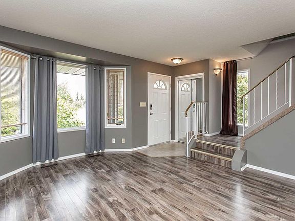 Pull up in front of this home and you will see it is special. Take in the quiet street with the trees and the park directly across from this charming two story home. Let the cute as a button front yard lead you up to the welcoming covered entrance. As you enter, the main floor impresses right away with its freshly painted walls and gleaming neutral floors, it presents a blank canvas waiting for your personal touches. The front living room is anchored by the bay window facing the street, and the kitchen and dining area are at the back of the home and overlook the back yard. The kitchen features newly refaced cabinetry in a beautiful pale woodgrain, and you get 4 appliances including a brand new smart stove. And you can appreciate the convenience of the powder room by the back door. Upstairs, three good size bedrooms and a full bath can accommodate a young family or roommates, and an additional rec room and full bath in the basement give everyone a little more space to spread out. Move-in ready and worry free, this home has a two year old furnace with a 15 year warranty, a newer water heater, new toilets, and Central Air Conditioning! Heading outside there is a concrete patio at the side of the home when you want a little time in the shade, and the yard is fully fenced for kids or pets or just privacy. Plenty of space around the firepit in the backyard will make your home the place to hang out, and the low maintenance landscaping means less work and more play. One vehicle can park in the garage and another on the concrete pad beside it, so you can leave the street parking for company. The neighborhood is quiet, the neighbors delightful, and there is a real sense of community here. Whether its a first home or just time for a change, this affordable little piece of heaven is an excellent choice - and it is waiting for you now.