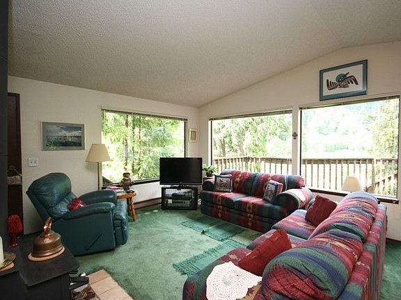 Incredible opportunity to own a water view home in Sudden Valley! With a wall full of windows & two large decks looking out to Lake Louise, you'll enjoy the tranquility of the water & abundant wildlife watching year-round. Park & walking trail just steps from the front door. The upper floor has bright vaulted ceilings & a wood burning fireplace, creating a modern cabin feeling. Kitchen w/ breakfast bar, dining area & living room in the open upstairs living space. One bedroom on each floor, each w/ walk-in closet & a full bathroom ensuite. Huge rec room w/ separate entry & deck access below. Awesome starter, downsize or vacation home. Community amenities include pools, beaches, marina, parks, trails, golf, library, salon & more!