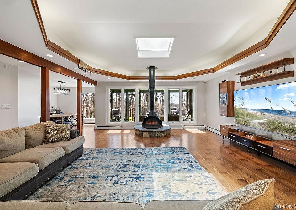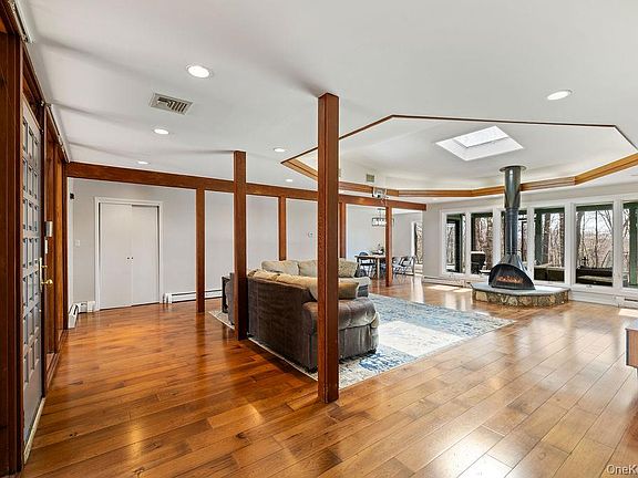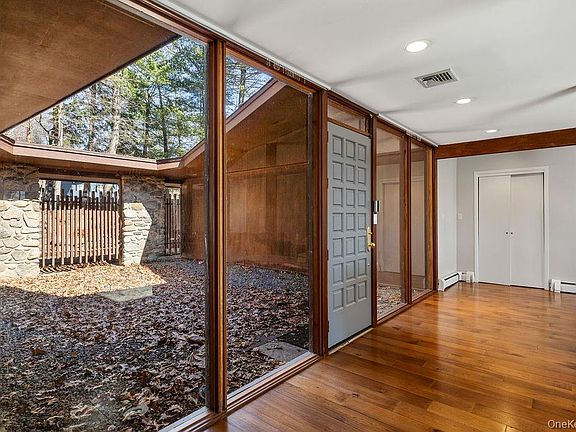 Discover this beautifully updated 4-bedroom, 2.5-bathroom contemporary atrium ranch, ideally situated on a tranquil cul-de-sac in Pomona. The home boasts an open floor plan accentuated by oversized windows and cathedral ceilings, creating a bright and inviting atmosphere. The main living area features a spacious great room with a cozy fireplace, a formal dining room, and a comfortable family room. A private laundry room and a convenient lavatory add to the home’s functionality. The master bedroom suite serves as a tranquil retreat, complete with a private bathroom, an expansive oversized walk-in closet, and a secluded sitting area. Recent enhancements include outdoor upgrades, such as the removal of trees for an open backyard to enhance its spaciousness and a new fire pit — perfect for gatherings. Enjoy serene views from the beautiful Florida room overlooking the level, scenic backyard. This home is in mint condition, reflecting the evident care and attention of its owners. Essential systems have been modernized with the replacement of the heater, boiler, and HVAC system last summer, ensuring year-round comfort and efficiency.