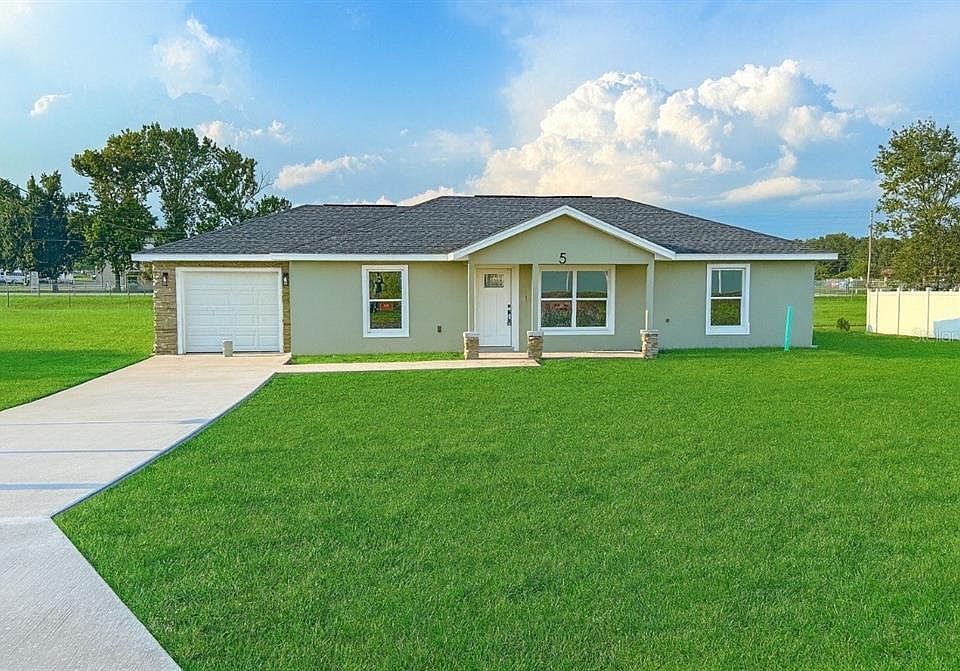 Under Construction. Welcome to your brand-new home in the heart of Silver Springs Shores! This stunning 3-bedroom, 2-bathroom home offers a bright and open floor plan, perfect for modern living. Built for both comfort and functionality, this model showcases luxury vinyl plank flooring throughout, granite countertops, and stainless steel appliances in a spacious, open-concept kitchen. Enjoy high ceilings, a split bedroom layout, and a large primary suite complete with walk-in closet and dual vanity sinks. The home also features a covered lanai, ideal for relaxing or entertaining, and sits on a quiet, paved street with no HOA. Located just minutes from shopping, restaurants, and parks, and within a short drive to downtown Ocala or Lake Weir—this home offers peaceful living with easy access to everything you need.