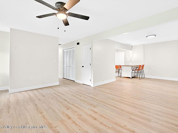 Ideal Woodstock living! This lovely 4 bedroom 3 bath private ranch is set back from the road on a quiet cul-de-sac just 3 minutes outside of the village of Woodstock. You enter and the first living space is on your right with space for a charming seating area. To your left are two bedrooms, a hall bath and a primary en suite. Through a door in the living room, you pass into a space ideal for an office, a Mother/Daughter suite or multi-generational living with a large seating area, bath one formal bedroom and a second room which can be additional sleeping space for guests or a studio. This area of the home has two private entrances. Off of the main living room is a large dining area leading into the spacious kitchen with all new appliances and more storage than anyone could fill! Beyond the kitchen is an enormous entertaining room with 3 sets of sliding doors that lead to the beautiful and private back yard and patio. Enjoy cool evenings around the fire pit! This home is close to all that Woodstock has to offer, including the Ashokan Reservoir and Rail Trail with its magnificent views! You are also a short drive to all the major roadways, shopping, galleries, hiking, and entertainment. This home is a must see!