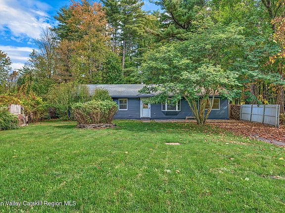 Step inside for a huge surprise! This tasteful ranch home hides 3 large living spaces, 4 spacious bedrooms 3 bathrooms, as well as an enormous pantry and dining space. You enter and the first living space is on your right with room for a full sized seating area. Down the hall to your left are two bedrooms, a hall bath and a primary en suite with room for a king sized bed. Through a door in the front living room, you pass into a space ideal for an office, a Mother/Daughter suite or multi-generational living with a large seating area, full bath and one formal bedroom. A second room can be used as a guest room, additional sleeping space, or a studio. This area of the home has two private entrances. Off of the main living room is a large open concept dining area leading into the spacious kitchen with all new appliances and more storage than anyone could fill! Beyond the kitchen is an enormous entertaining room with 3 sets of sliding doors that lead to the beautiful and private back yard and patio. This home is set back from the road on a quiet cul-de-sac just 3 minutes outside of the village of Woodstock. It is close to all that Woodstock has to offer, including the Ashokan Reservoir and Rail Trail with its magnificent views! You are also a short drive to all the major roadways, shopping, galleries, hiking, and entertainment. This home is a must see!