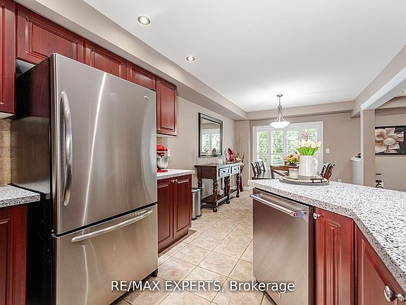 Very Spacious 3 Br End Unit Townhouse!! Open Concept Living and Dining Rm With Fireplace!! Premium Hardwood Flooring On Main Floor And All Bedrooms !! Spacious Kitchen with Huge Eat-in Area And Walkout To Private Deck !! Entire Home Is Spotless And Well Maintained!! Upper Floor Has 3 large Bedrooms!! Huge Master Bedroom Has 4pc Ensuite !!Walk-in From Garage To Home!! Must Be Seen To Appreciate Value!! ** POTL Fees $153.30 per month **