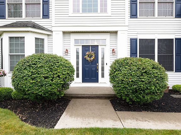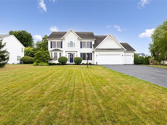 The BEST of Pittsford! This fabulous home has been meticulously maintained by its original owners and is now available! This beautiful 4 BDRM, 2.5 bath home with 3-car garage in Kensington Woods checks all the boxes! The light and bright two-story foyer with upgraded hardwood flooring, flanked by the formal dining room and living room, beckons you in! Enjoy entertaining in the large eat-in kitchen featuring cherry cabinets, stainless steel appliances, granite countertops and island that opens to the family room with a gas fireplace. Adjacent to the kitchen, enjoy your morning coffee in the cozy, sunlit sunroom with vaulted ceiling and sliding glass doors overlooking the outdoor paver patio. Privacy abounds as you are surrounded by lush landscaping. Working from home is a breeze in the spacious first-floor office PLUS a half bath and laundry room completes the first level. Upstairs find 4 good-sized bedrooms, including the primary bedroom, which offers an ensuite bath with double sinks, as well as a separate soaking tub and shower. The large, unfinished basement offers loads of storage and the option for future finishing. The home is situated in a peaceful cul-de-sac location and is truly move-in ready, with EV Charging station, all appliances, natural gas grill & Nest doorbell. Updated mechanicals: AC 8/22, H20 Tank 9/21, Furnace 12/20. Close to parks, schools, shopping & more. Delayed Negotiations 10/6 @10am