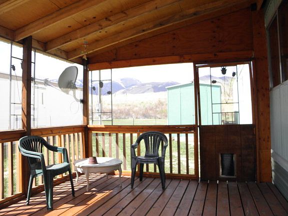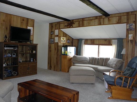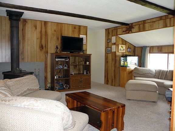 Price Reduced!!! Newly remodeled, inviting home with fabulous screened in front porch/deck. Perfect to expand your living space in the summer! The living room is bright and spacious with cozy wood stove and is open to the kitchen that features brand new gas range and ample cabinetry. The dining room has built in cabinetry offering elegant dining. The spacious master bedroom is adjacent to the remodeled bathroom and the 2nd bedroom is surprisingly spacious as well. The yard has child-safe chain link fence. Extremely well cared for home with many upgrades! Affordable living at its best! Space rent is $225.00 per month with water, sewer and garbage included.