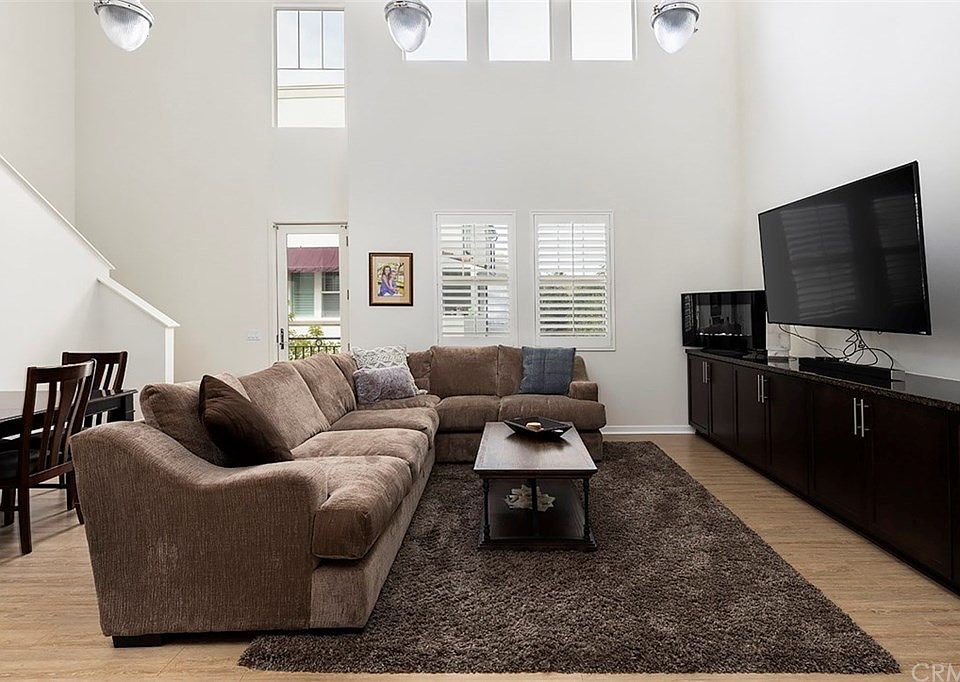 This property has the most sought after 2 bedroom floor-plan in this entire tract. The second floor has a spacious great room with soaring 2-story ceilings that let in an abundance of natural light and the large balcony off the living room is perfect for BBQing or just enjoying the sunset views. The kitchen has been masterfully upgraded with beautiful wood cabinets, a high-end tile backsplash and quartz counter-tops. With plenty of privacy between the bedrooms, this layout is perfect for multiple lifestyles. The amenities in Rancho Mission Viejo are world class and youall have access to them all. The Outpost neighborhood even has its own exclusive pool and community rooms. Come see why this has become the most loved community in Orange County.