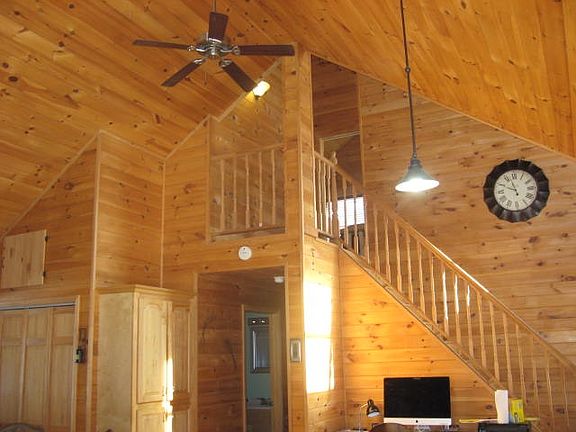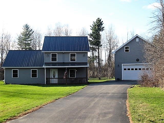 A house in the trees. This newer contemporary home has an open floor plan with a family room and two bedroom and full bath on the main floor. The second floor has a spacious master bedroom with a full bath. The cathedral ceilings and natural wood warm the home. The newer wood floors and other updates make this move in ready. Above the garage is a 24 x 40 bonus room complete with wood floors and bar. All of this on 2.1 acres of land just minutes from Potsdam and Madrid.