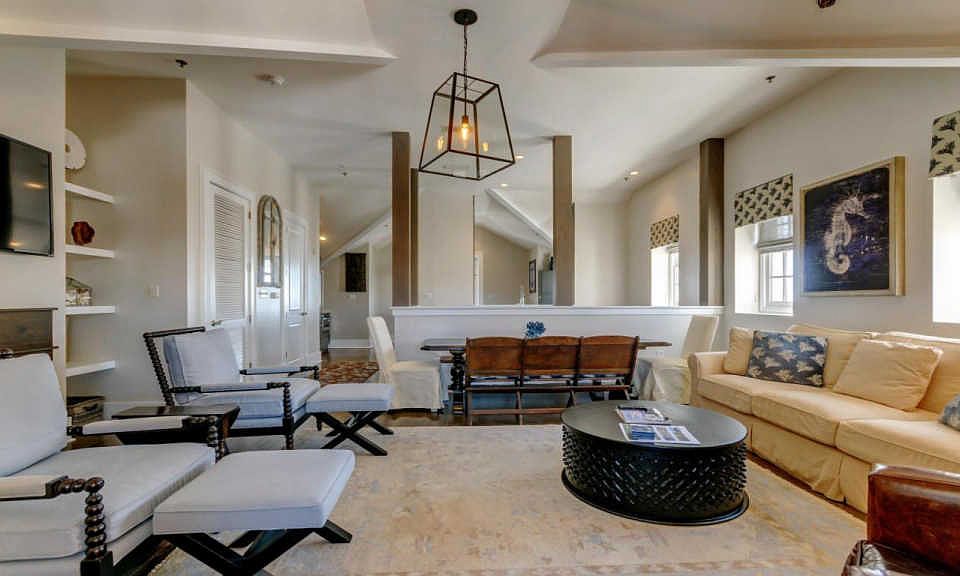 This private corner condo is your gateway to everything vibrant Rosemary Beach has to offer. The 3 bedroom, 2.5 bath penthouse condo features 5 balconies including a covered loggia for entertaining with views of both Main Street AND the Gulf of Mexico. Recently renovated, the 2nd floor is a stylish, open living area with a wall of windows to flood the space with natural light. The stunning kitchen has been updated with open shelving, a waterfall quartzite island and Viking appliances. A balcony off the kitchen is the perfect place for dining al fresco while looking at the Gulf or relaxing on the swinging daybed. This home is a reverse floor plan with a huge master bedroom and sitting area, ensuite bath with separate garden tub and shower and private balcony overlooking town center.