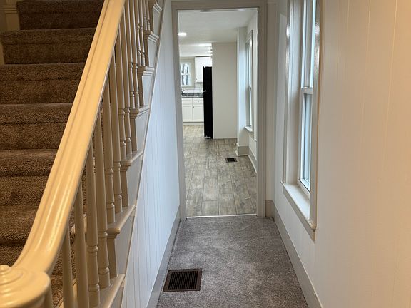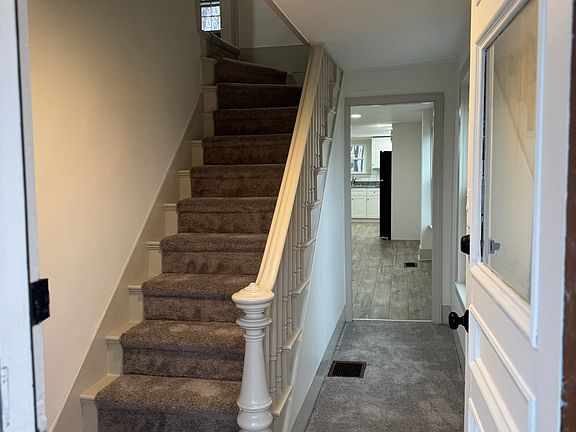 The interior has been just renovated in the last few months and all appliances are brand new other than the combo washer / dryer which is in very good shape. There is an open floor plan layout with kitchen and dinning room / eating area. There is one room on the first floor with a closet suitable for either a bedroom or office, a modest sized living room, and a very cute front sun room. All floors have been updated with either plank flooring or carpeting. Upstairs there are two modest, but nicely renovated, bedrooms.