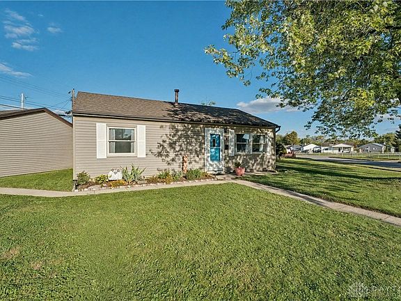 Step inside this beautifully updated ranch-style home, perfectly situated on a spacious corner lot with a mature shade tree and fresh landscaping that creates vibrant curb appeal. From the moment you arrive, you’ll feel the warmth and character this home has to offer- enhanced by a newer roof that adds both value and peace of mind. The inviting front living room provides a cozy yet open feel and flows seamlessly into the updated kitchen, which features new granite counter tops, freshly painted cabinetry, and is fully equipped with a refrigerator, stove, microwave, washer, and dryer — making it truly move-in ready. Fresh paint carries throughout the home, extending from the living room into the hallway, which features an updated light fixture and a convenient storage closet. Brand-new carpet in the bedrooms adds a soft, clean finish to the home’s refreshed interior. The bathroom continues the modern appeal with a neutral color palette, updated lighting, and a full-sized shower/tub combo. Step outside to enjoy a private, fenced backyard — perfect for gardening, entertaining, or simply relaxing. A detached 2-car garage offers generous space for parking, storage, or hobbies. Ideally located just minutes from Wright-Patterson Air Force Base, Wright State University, and The Mall at Fairfield Commons — with easy access to I-675 and Route 35 — this home is perfect for military families, students, first-time buyers, or anyone seeking charm, comfort, and convenience. Don’t miss your chance to make this beautifully maintained home yours — it won’t last long!