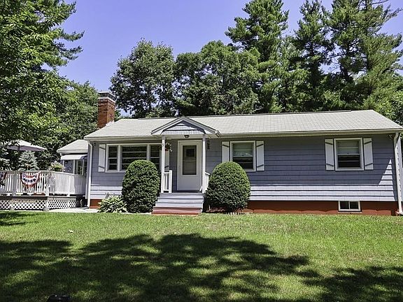 Welcome home to this wonderful well maintained 3 bedroom ranch nestled on a quiet street in desirable East Billerica. Enter through a large front deck into the den and be greeted by a light filled space perfect for relaxing with family. Move through the sparkling eat in kitchen with beautiful oak cabinets. Gleaming hardwood floors throughout the fireplaced living room, hallway and 3 spacious bedrooms with ceiling fans. Move down to partially finished basement where there is a work space area, pantry, laundry area, playroom space, a room that could be used as a home office with electric heat and a bathroom. Head through walkout basement door to indoor/outdoor workspace area, then into the fenced in backyard making this a great space for children and furry friends. 2 wall ac's keep first floor cool in summer. Roof replaced in 2005, furnace 2006, hw tank 2014. Reeds Ferry shed offers electricity & more storage. Lots of outdoor space, New Carport 2020. Must see! Showings begin immediately