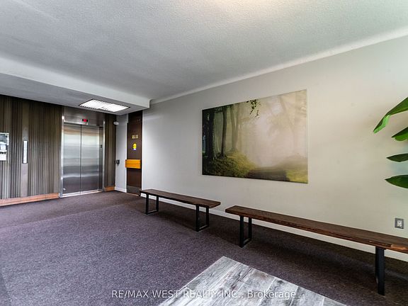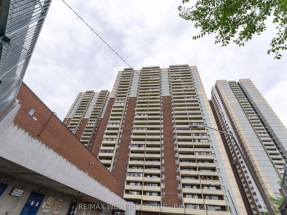 Penthouse corner unit offering 978 sq ft of well-appointed space in Crescent Town, just steps from Victoria Park Station. This 2-bedroom, 1-bath condo features 9-foot ceilings, crown mouldings, and upgraded flooring throughout. The kitchen has been updated with quartz countertops, a waterfall island, glass tile backsplash, and a farmhouse-style sink. Pot lights provide ambient lighting across the open-concept living and dining area, which leads to a private balcony with expansive views of the lake and golf course. The primary bedroom includes a walk-in closet with custom organizers. Additional conveniences include ensuite laundry and a walk-in pantry. Residents enjoy complimentary access to an on-site club featuring pools, squash and racquetball courts, a gymnasium, and multipurpose rooms. Building amenities also include two daycares. With direct subway access via an elevated walkway, nearby parks, schools, shopping, and Dentonia Park Golf Course, this unit offers generous living space in a connected and established community.