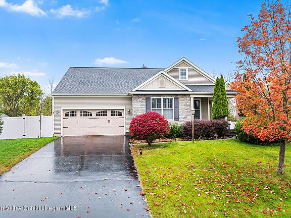 Welcome to this beautifully maintained Marini-built home offering an open floor plan with neutral décor and incredible features throughout. Enjoy wood floors, a vaulted ceiling in the great room, and a cozy gas fireplace. The home is wired for surround sound and showcases plantation shutters and custom window treatments throughout. The spacious basement features 9' ceilings and rough plumbing for a future bathroom. The primary suite includes a tray ceiling and a generous walk-in closet. Outside, relax or entertain in the private backyard complete with a stamped concrete patio, retractable awning, and a 16x36 in-ground pool with diving board. Additional highlights include an attached garage, outdoor storage, and a charming front porch.