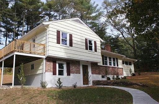 Just move right in!! A complete restoration of this lovely seven-room, four-bedroom, two full bath multi level home situated on a three-quarter acre lot. Close to major routes, schools and shopping. New:kitchen with granite counters and stainless appliances. New baths, new hot water tank, newer warm-air by gas heat, new central AC, new 200-amp electrical service, new windows, new exterior insulated doors, new large deck, patio. New septic system: TITLE V IN HAND! Best of all--lovely family room with floor-to-ceiling large windows giving one a view of Mother Nature. Easy, in-home office situation. Walk to King Philip School and shopping. Lake Pearl nearby!! Upon obtaining Wrentham Town approval, Seller will install half circle driveway.