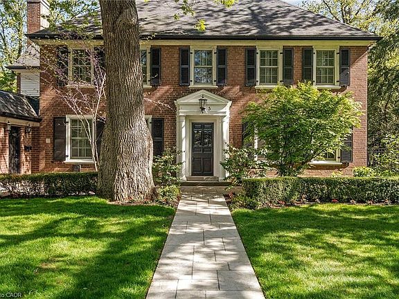 A home of rare distinction, this stately Georgian masterpiece on sought-after Mayfair Place welcomes you into a lifestyle defined by quiet sophistication, unrivalled convenience and a sense of pure joy. Perfectly positioned on a secluded cul-de-sac in the heart of Westdale, it combines the grace of a country estate with the ease of city living—steps to McMaster University, Westdale Village’s boutiques and cafés, the Royal Botanical Gardens, and quick highway access. Mature trees and professionally designed gardens frame the property, while a ravine backdrop lends breathtaking privacy. Re-envisioned by noted architect Clive Grandfield, the residence blends timeless proportions with a seamless two-storey addition, creating a home as functional as it is elegant. Quarter-cut white oak floors with radiant in-floor heating set a warm, inviting tone across sun-filled rooms of classic symmetry. At its heart, a Downsview-crafted chef’s kitchen showcases a 48" Wolf dual-fuel range, Sub-Zero refrigeration, Bosch dishwasher, and generous island—designed for both culinary artistry and convivial gatherings. Every detail speaks of bespoke luxury: heated tile in all baths and entrances, triple-pane Marvin windows and sliders, custom California shutters, restored brass hardware, two wood-burning fireplaces, and soaring vaulted ceilings in the loggia and upstairs landing. Built-in storage and main-floor laundry add effortless practicality. Outdoors, a private sanctuary awaits: a level, landscaped yard accented by 14 ornamental trees—magnolia, dogwood, cherry blossom, Japanese maple, and goldenrod—surrounding a newly resurfaced concrete saltwater pool. Soft evening lighting and a dedicated three-piece bath that doubles as a pool cabana create a setting of pure resort-style indulgence. This exceptional Westdale retreat boasts classic heritage meets modern refinement. is Luxury certified.