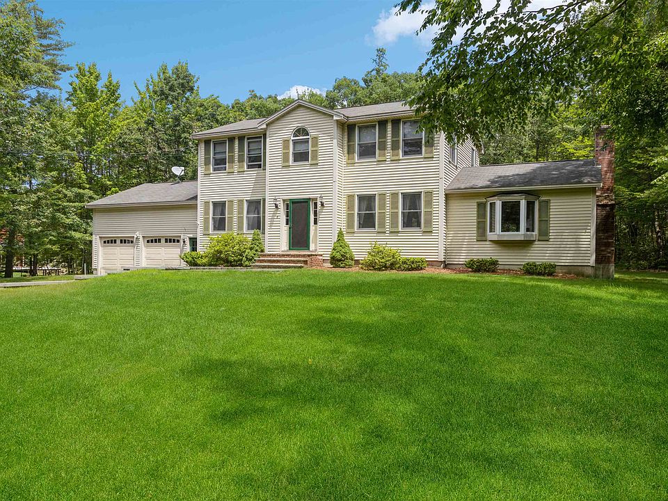Welcome to the desirable Bear Hill neighborhood. Located in Brookline, NH, that's also well known for its award winning schools. Easy commute to MA and Southern NH towns. This is a well cared for home by original owner that's tucked down a paved driveway off a cul-de-sac giving you the privacy you desire. Enjoy 1.9 acres of nicely landscaped grounds featuring irrigation, an attractive retaining wall, a wide brick stepped entrance both topped with stone. The 2 car garage has direct entry to inside & direct entry from outside. The big backyard is private with a nice deck that has access to the heated 4 season sunroom through lovely French doors. Grounds are fairly level, nice big lawn space, even room for a pool! First floor is open with beautiful hardwood floors in both the formal dining room and formal living room all with lots of natural daylight throughout the house. The eat-in kitchen is nice roomy. Featuring granite tops and plenty of cabinet space. There is a 3/4 bath on the first floor. Off the kitchen is the family room with a cozy wood burning fireplace. The floor plan works well for entertaining a big family. Upstairs is the full bath and the 3 bedrooms all with nice carpet. Oversized primary has a walk in closet and a desk area. Basement is unfinished with walk up to bulkhead and laundry hook ups. Home needs some minor updates but a great opportunity to add your own touches. Rm sizes approx. Easy to show.