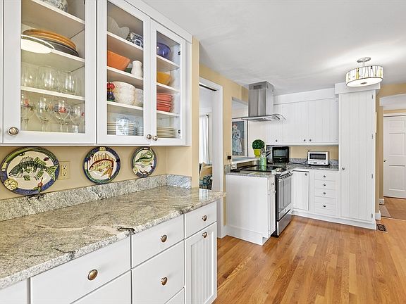 This classic cape is in pristine condition and provides the best in convenience and comfort. The first floor offers a great flow from the spacious kitchen to the open dining and living room area (with fireplace), to the cozy, warm den/TV room. The updated 1/2 bath and wonderful mudroom/pantry area complete the first floor. The second floor features 2 large bedrooms, spacious bath, plenty of closet space, wonderful built-ins and laundry. The home sparkles with gleaming wood flooring throughout, upgraded windows, solar hot water and tons of storage. The large deck and patio offer great outdoor living spaces. The attractive, professionally landscaped yard and perennial gardens include a spacious fenced-in area off the back deck - perfect for dogs and kids. Additionally, the home offers convenient 3-car parking and a large shed with power and wood burning stove. Great location – easily enjoy the shops, restaurants, museums, theaters, beaches and all Marblehead has to offer.