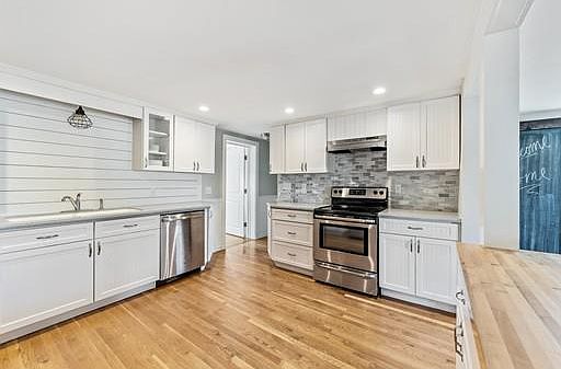I do believe Joanna Gaines has decorated this home!! Farmhouse fresh and inviting is the best description of this 3 bedroom/ 3 full bath home in sought after Foxboro. This home was completely transformed in 2014 when the second floor was added turning the ranch style home into a BEAUTIFUL CAPE. The detached 2 car garage is heated. Above you will find an amazing "MAN TOWN". Beyond the pristine condition you find updated Harvey windows (2014/2017), roof (2014), BRAND NEW 3 bedroom SEPTIC (2018), Goodman gas furnace (2016), Central air (2016), nest thermostat, finished basement has electric forced hot air heat and A/C, stamped concrete garage apron & front walkway, this home also conveys with a deeded lot...the list goes on & on!!