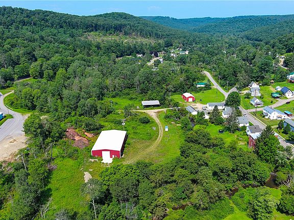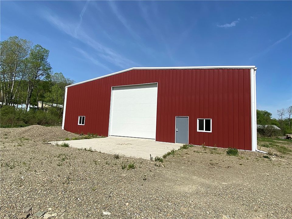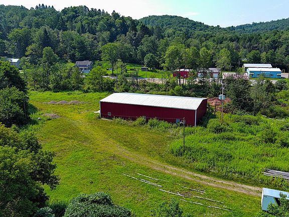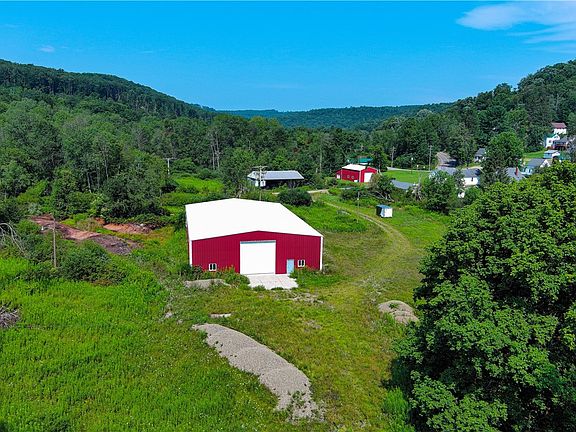 Situated just off scenic Route 6, this reconditioned 60' x 100' insulated steel building offers over 16 acres of opportunity. With steel trusses, a concrete floor, and a 16' overhead door, the structure is built for durability and functionality. Three-phase electric is available, along with community water and public sewage connections, making it ready for a wide range of commercial uses. A pole shed provides protection for vehicles and equipment. A newer 50-ton bridge enhances access to an oversized parking area, adding to the property's appeal. Whatever you're envisioning, this location offers the infrastructure and flexibility to bring your vision to life. With high visibility and easy access, the possibilities are endless.