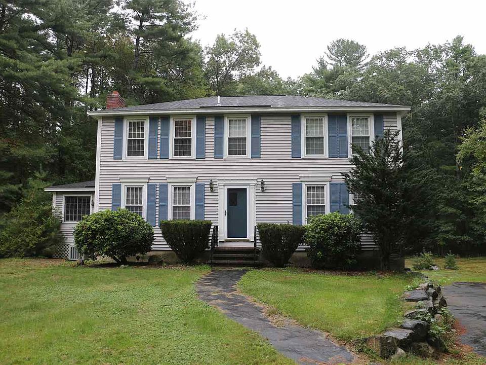 This four bedroom, 2 1/2 bathroom center entry hip roof colonial is perfectly situated on a large level 1.16 acre lot, that abuts conservation land and is in an attractive, well established and conveniently located neighborhood. The exterior of the home features vinyl siding and a one year old roof. The kitchen is eat-in and is nicely sized with ample storage and a separate attached island. The wood burning stove with surrounding brick and full length mantle are the focal point of the family room, which opens to the kitchen with a half wall. An office/formal living room, and a three season porch with access to the back deck are also found on the first floor. A newer main bathroom, a master bedroom with ensuite bathroom, and three additional nicely sized bedrooms comprise the second floor. This home has much to offer and is offered at an attractive price. Located in the sought after Windham School District and convenient to shopping, I-93. Welcome Home!