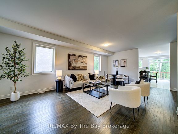 Welcome to one of Baycliffe Communities' most sought-after models, set on a premium walk-out lot backing onto protected parkland and forested trails - ideal for those seeking privacy and a direct connection to nature. This newly built Redwood Model offers over 2,900 sq. ft. of thoughtfully designed living space, combining functionality and a serene natural setting. The all-red brick and stone exterior provides timeless curb appeal, while the rear exposure opens to uninterrupted green space.The main floor features 9-ft ceilings, rich hardwood flooring, and an upgraded trim package, anchored by a crisp white kitchen open to the living room. Soaring two-storey windows frame serene forest views, filling the home with natural light. A main-floor laundry room with garage access and a convenient powder room complete this level. Upstairs, four generously sized bedrooms each enjoy access to an ensuite, including a Jack & Jill bath ideal for family living. An open loft overlooks the living room below, adding architectural interest and flexible space. The primary suite impresses with two walk-in closets and a sleek glass shower ensuite.The walk-out basement opens directly to peaceful green space, offering exceptional future potential for additional living space while maintaining a strong connection to nature. Immediate occupancy available. Tarion Warranty included. A rare opportunity to secure a premium lot, a walk-out design, and a spacious floor plan within a highly desirable community. Conveniently located minutes from schools, shopping, trails, and the world's longest freshwater beach, and a short drive to Collingwood and Blue Mountain Resort.