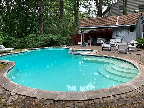 Nestled in one of Andover’s most sought-after neighborhoods, this beautiful 4 bed 2 bath colonial offers the perfect blend of comfort, privacy, and convenience. Set on a private 1-acre lot, the property features 2 decks, a screened in porch, a gunite in-ground pool and heated inground spa, ideal for relaxing or entertaining in your own backyard oasis. Inside, you’ll find a bright and inviting floor plan with spacious living areas, 2 wood burning fireplaces, some freshly painted interior rooms, and an abundance of natural light. The kitchen includes a newer dishwasher (2025) and oven (2024). Most windows in the home have been replaced and the roof was updated in 2018, providing peace of mind for years to come. Additional updates include a newer driveway, enclosed storage area under screened porch, pool cover, gutter/leaf guards, ensuring both beauty and functionality throughout the property. With Harold Parker state forest around the corner, you can enjoy boating, hiking and biking.