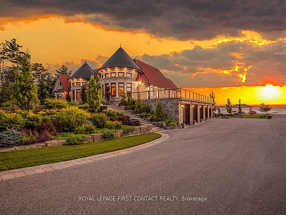 Welcome to this stunning waterfront home in the Edmore Beach area of Tiny. This custom built bungalow offering nearly 10,000 square feet of living space and 350 feet of Georgian Bay waterfront has some of the most spectacular sunsets you will ever see. This one of a kind home features 4 bedrooms all with walk in closets and custom wood organizers. A gourmet kitchen with natural quartzite counters and high end Wolf and Sub Zero appliances. A 5 car heated garage with over sized 10x10 doors for all your toys, 2 beautiful wood burning natural stone fireplaces and extensive cherry wood cabinetry throughout the entire estate. The walkout basement is an entertainers dream with heated flooring, bar/2nd kitchen and multiple doors leading to your own large private beach and boat launch. The list of features is expansive and sure to please even the most discerning buyer.