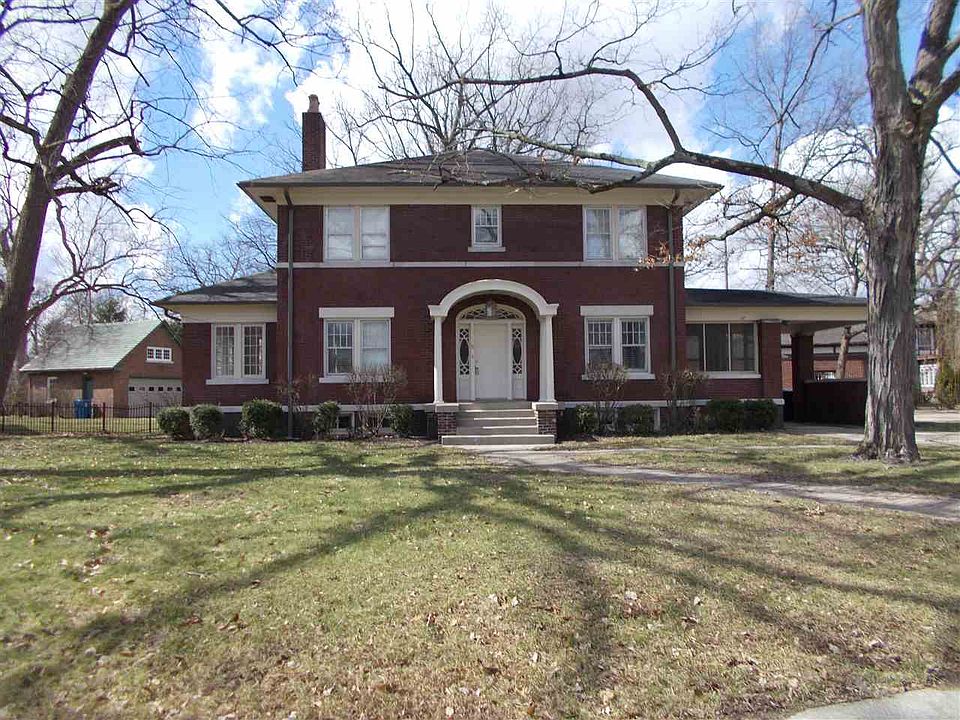 You will find this historical 2-story brick gem among other stately homes on Monroe Blvd in Edgewood Grove. The first floor boasts a pretty updated kitchen, half-bath, great family room with gas fireplace. sunroom. screened porch, and gorgeous hardwood floors give this charming home character. An impressive staircase leads to 4 bedrooms on the 2nd level with a remodeled tiled bathroom. A new efficient boiler furnace, central air, 2 car detached garage, wood deck on back, and a basement will provide lots of extra storage. A brick and concrete drive add durability and value to this impressive historical home on the east side of Terre Haute.
