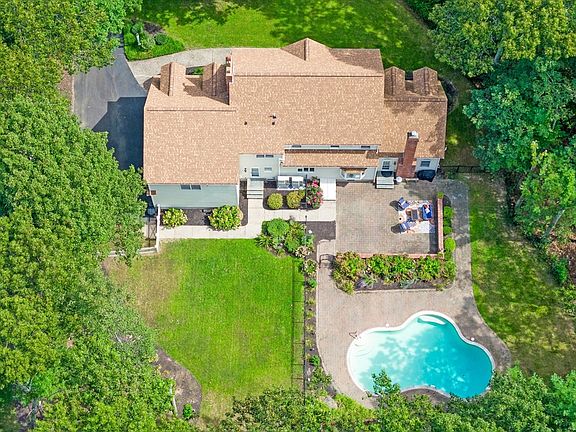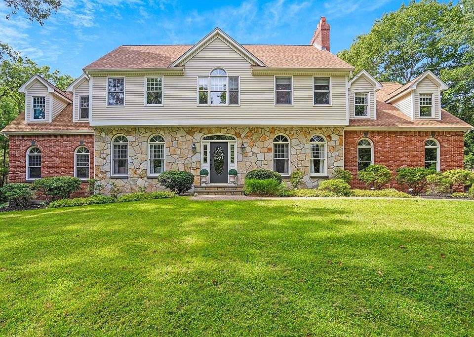 This gorgeous, sophisticated home is located in highly sought-after Pheasant Hill Estates on a quiet cul-de-sac street. The main level boasts a grand 2-story foyer, elegant dining rm w/ fireplace, lovely formal living rm & oversized family rm w/ pellet stove. Spacious, freshly painted chef's kitchen w/ granite countertops and SS G.E. appliances. Pretty updated 1/2 bath and convenient laundry rm. Upper level offers a huge primary suite w/ fireplace, 2 walk-in closets & ensuite bathroom, plus 3 add'l generously sized bedrms and bonus rm perfect for home office. Partially finished lower level includes a large rec rm, a wet bar and 1/2 bathrm, plus storage. Garage features 3 new doors, epoxy floor and electric vehicle (EV) plug. Beautiful backyard oasis with heated gunite pool w/ new filter, pump & cover, big patio, spacious fenced yard, pool shed & impressive prof landscaping. New roof (2023), 2 new oil tanks, 2 new high-efficiency heat pumps/AC (2024) & 12-zone irrigation system w/well.