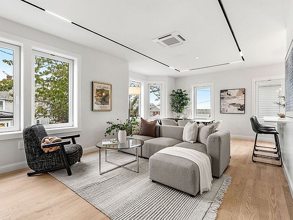 Welcome to 5 Nancia St, Unit 2 — a stunning NEW CONSTRUCTION condo in the heart of East Boston offering over 1,600 square feet of modern living space across two levels. This 3-bedroom, 3 full bathroom home blends contemporary design with thoughtful functionality. The main level features an open-concept living area, a designer kitchen featuring custom cabinetry, GE Cafe appliances & quartz countertops with access to your FIRST private deck—perfect for entertaining or enjoying morning coffee. Two good sized bedrooms on the first floor as well as the 2 full bathrooms featuring tastefully chosen fixtures and tile! The entire third floor is dedicated to the primary suite, complete with a second living room, a spa-like bathroom, and a 200-square-foot private deck showcasing breathtaking ocean and city skyline views. Complete with garage parking & additional green space, this unit is ONE OF A KIND!