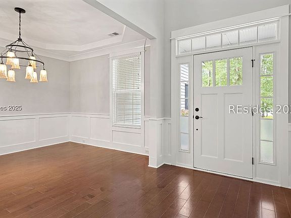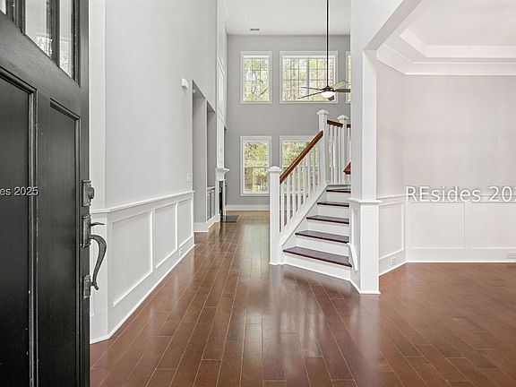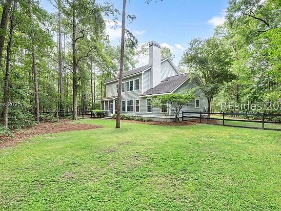 Tucked within a secluded cul-de-sac, offering .77 acres of privacy, this charming 5-bedroom home supplies every convenience. From soaring ceilings to rich wood floors, enjoy a freshly painted interior, craftsman trim, handsome fireplace w/built-ins, updated lighting & desirable open floorplan. Spacious kitchen offering crisp white cabinets, double ovens, tile backsplash & pendant lighting. Large first floor owner's suite w/tray ceiling & generous bath, features 2 sink vanity, tiled shower and separate tub. Four guest bedrooms upstairs, (including an oversized bonus with dedicated bath), each with LVP flooring and ample storage. Outdoor living is a breeze with your screened patio, fenced yard & calming wooded views. Rose Dhu Creek Plantation is a Bluffton favorite, providing gated security, community pool, gathering place, ~6 miles of trails, & fun social events throughout the year.