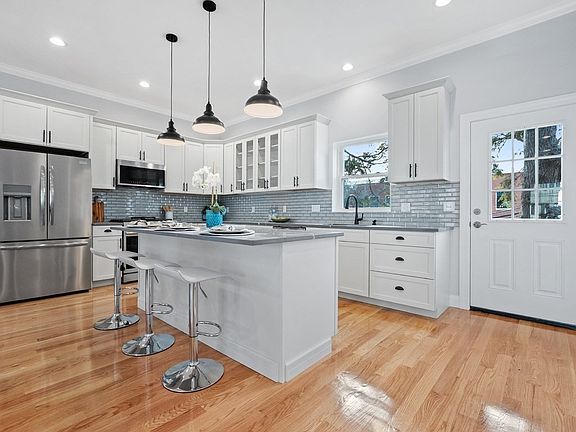 The top-floor primary suite offers a spa-inspired bathroom with dual vanities and a generous walk-in closet. A first-floor guest suite provides its own private bath and direct access to a deck and fenced yard, ideal for guests or extended stays. Additional features include a finished basement family room, heated one-car garage, driveway parking, central air and heating, and a welcoming mudroom with built-in cubbies and bench. Featuring modern stainless steel appliances and in-unit laundry.