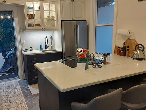 Newly renovated kitchenPlenty of cupboard spaceConvenient breakfast barUpdated bathroomModern fixturesFresh finishesWell-sized bedroom